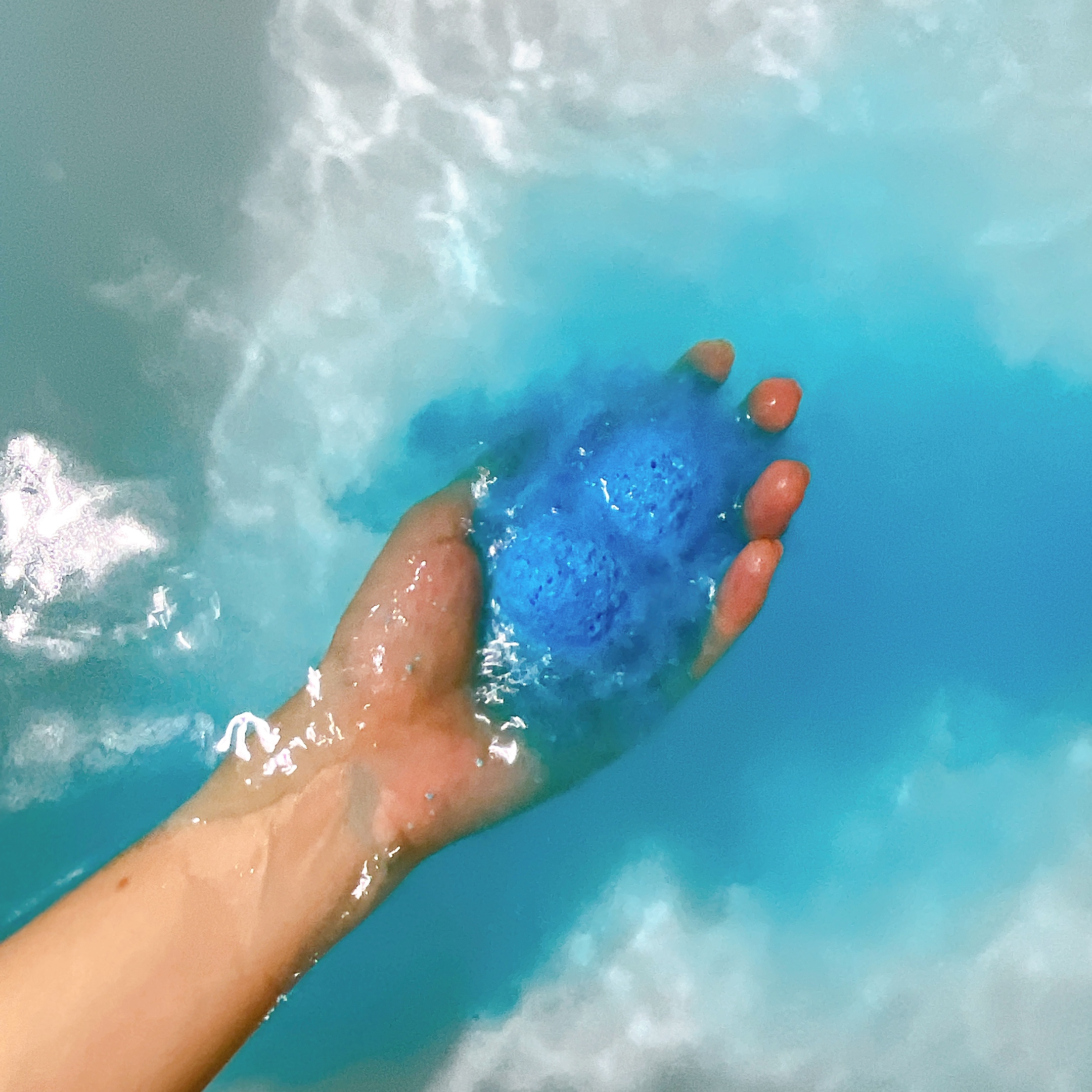 상쾌한 향과 함께 푸르게 물든 것을 보고 있자니 저절로 시원해지는 느낌이 들었다. 마치 데이비드 호크니의 수영장 그림 속의 한장면 같았다. 보글보글 탄산을 뿜으며 빠른 속도로 녹아들어가는 캔디밤의 모습을 놓치지 않으려 빠르게 사진을 남겼다.