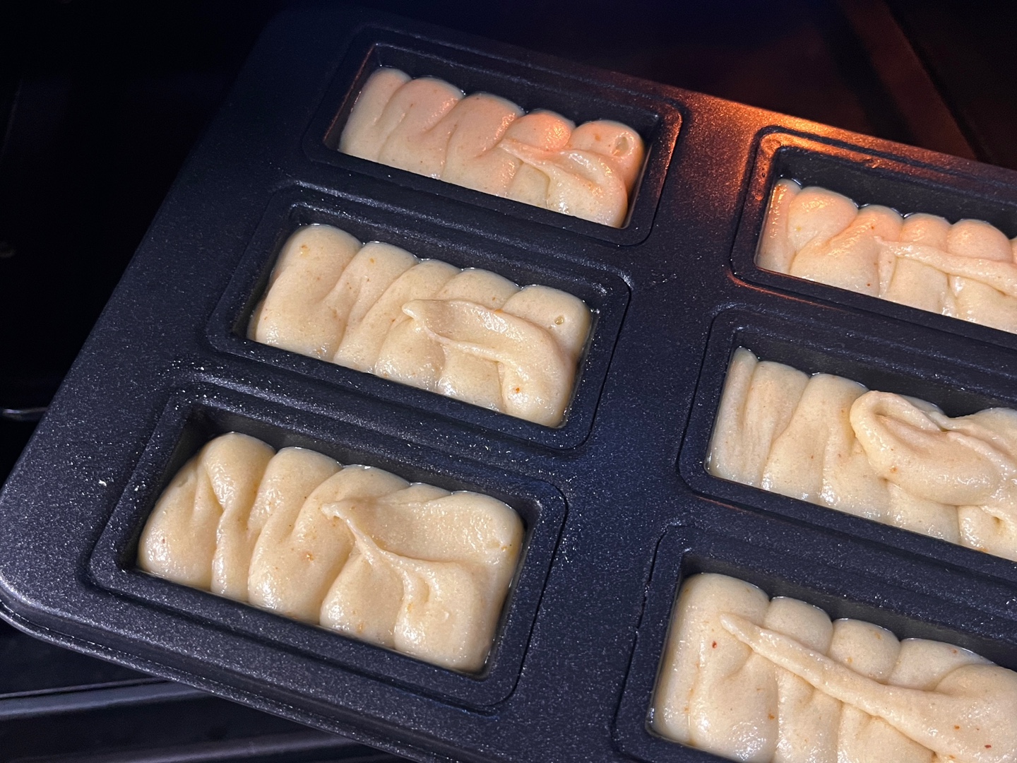 이때에 버터가 많이 들어간 레시피라 틀에서 잘 떨어지는 편이지만 그렇지 않은 경우도 있으니 미리 틀에 녹인 버터를 발라주는 것을 추천한다.