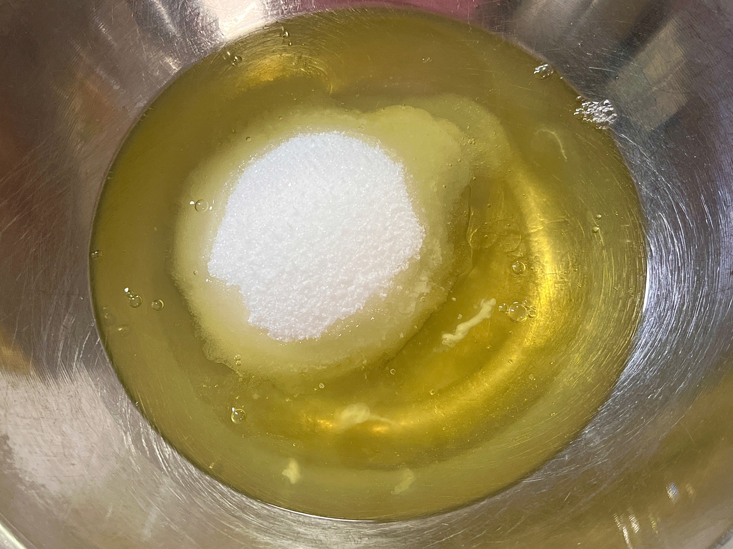 휘낭시에 반죽을 만들때는 계란 흰자와 설탕, 꿀을 가장 먼저 섞어 준다. 계란 흰자에 설탕이 녹을 정도로만 거품기를 이용하여 섞어주면 되는데 이때 계란 흰자의 온도가 너무 낮으면 설탕이 잘 녹지 않으니 모든 재료는 상온에 미리 꺼내두었다가 사용하는 것을 추천한다.